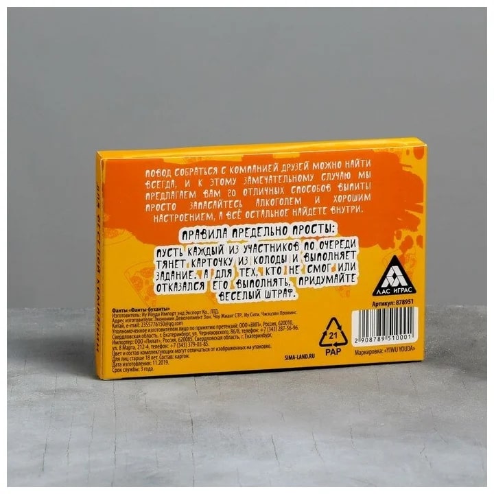 Купить игра для компании "фанты буханты" 20 карт от 100 руб. с доставкой до пункта выдачи в Зубцове. Интернет магазин ДекаМаркет. Оплата при получении.